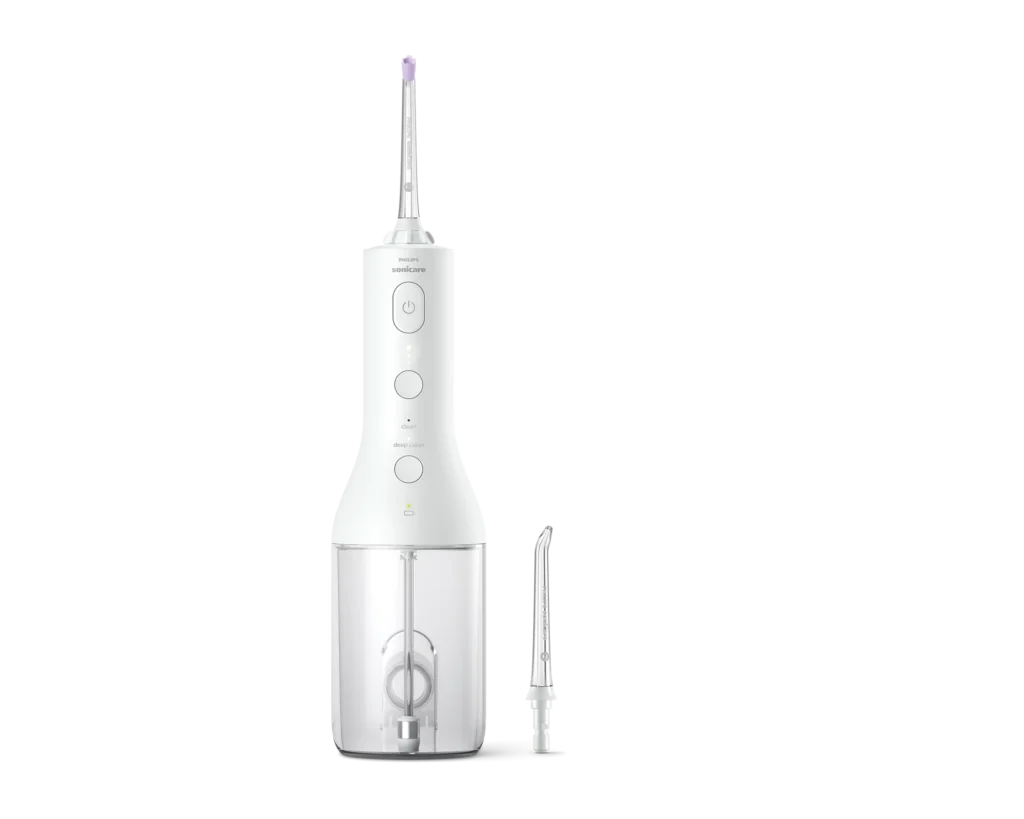 Just aim the water stream at the gumline and let it flush away debris. It’s fast, mess-free, and convenient.